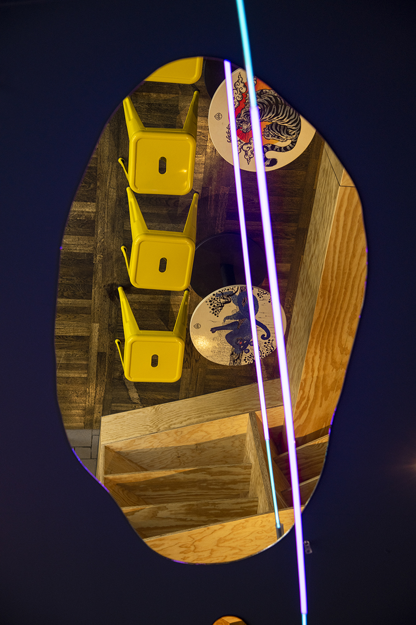 Amore was a pop-up bar in the neighborhood of Maxvorstadt, Munich. The most prominent characteristic of the room was the artistic design: The walls showed large areas of monumental illustrations by the munich artist createdbygabe. Additionally, the ceiling installation by vienna artist Raphaela Riepl with neon lights was a signature piece of the design. In addition to bar operations, cultural events were regular: readings and talks, discussions and social clubs, exhibitions and performances.